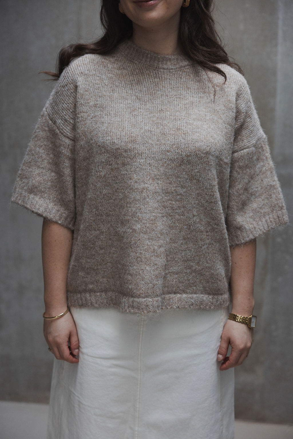 Loesjes musthave knit korte mouw beige