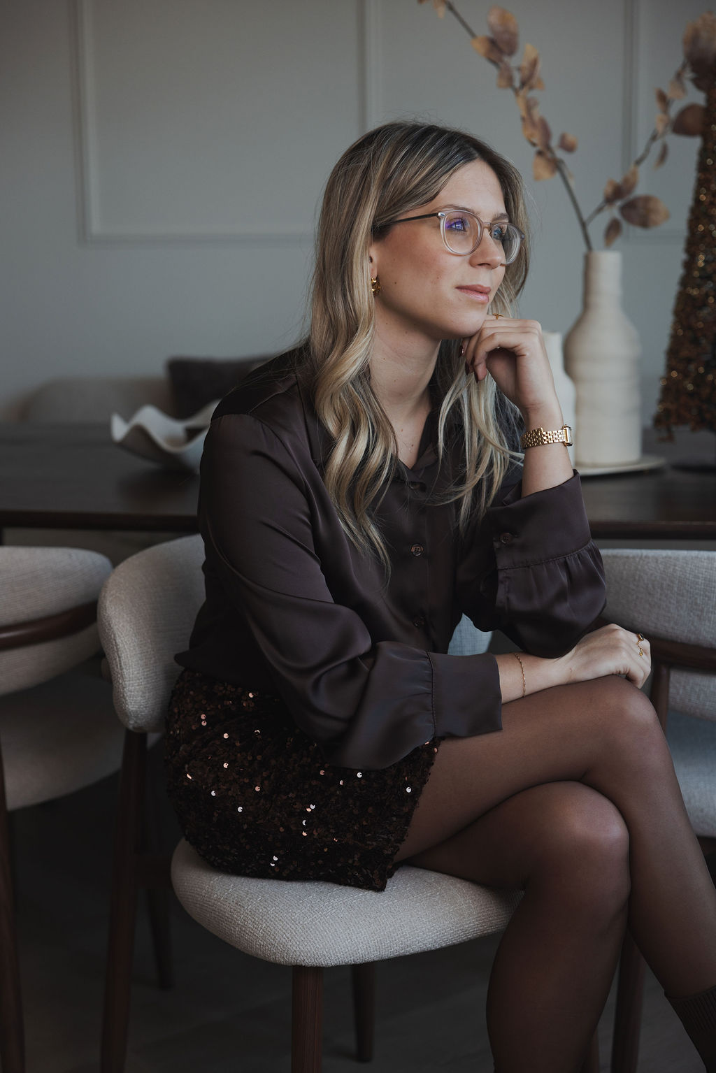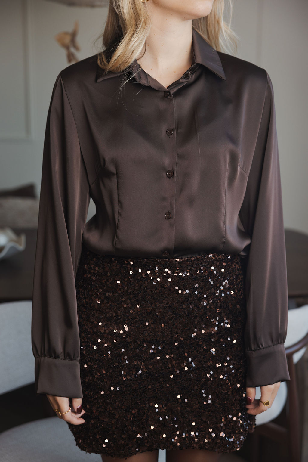 Loesjes satijnen blouse donkerbruin