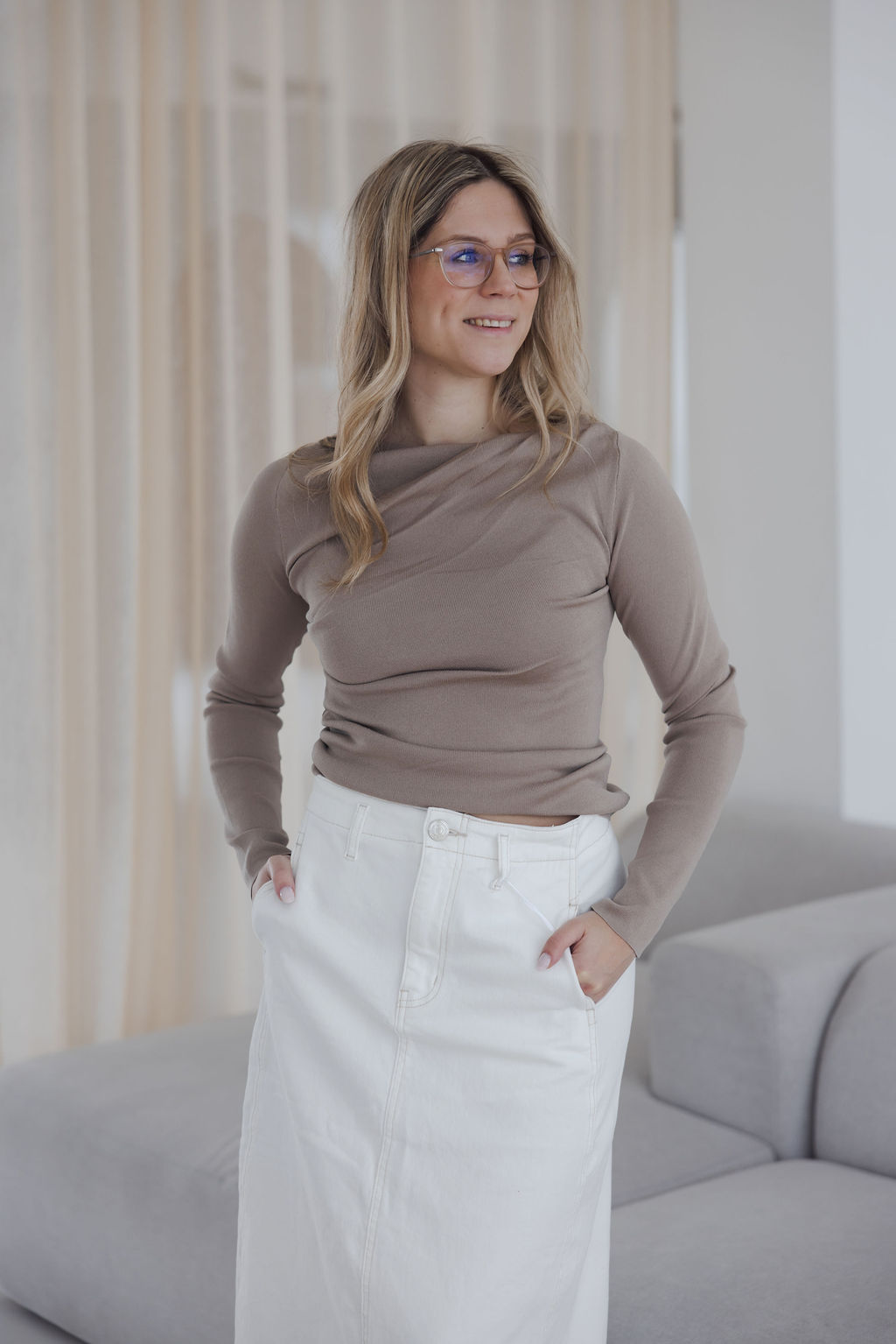Loesjes wrap top taupe